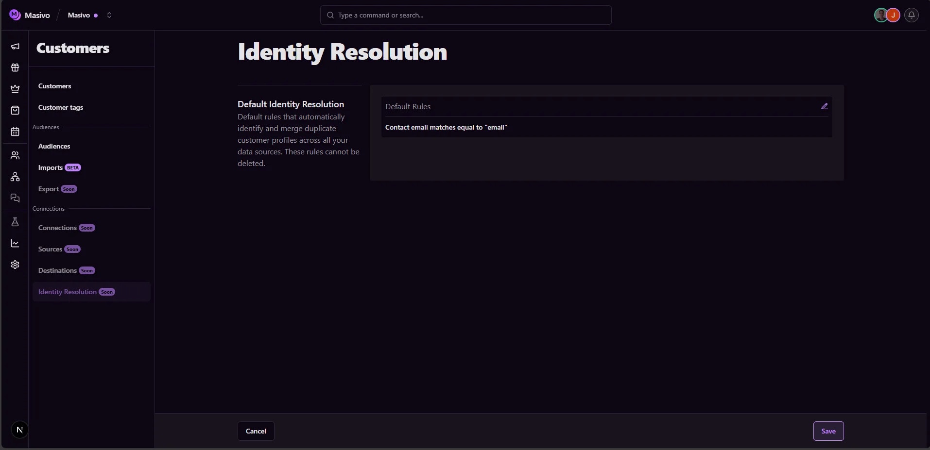 Since the default rule applies to all your data sources automatically, you don’t need to configure anything separately for each integration. Whether a customer interacts through your website, mobile app, email campaigns, or any other connected platform, the same identity matching rules will work across all of them.