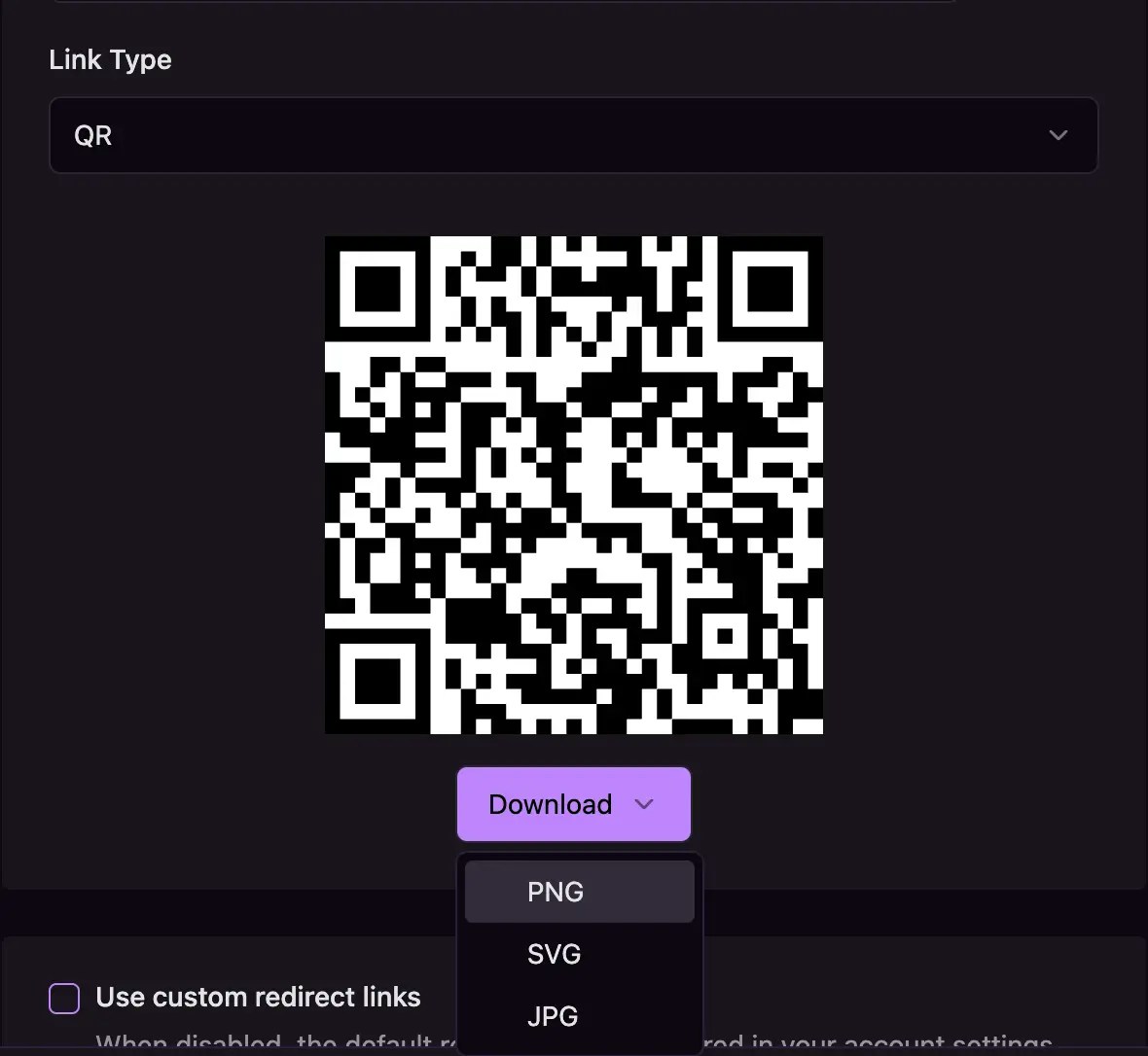 - QR: Choose when you need a scannable QR code for print materials or physical displays