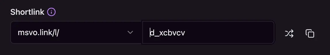 Select your domain: Choose between the custom domains you’ve configured in your account settings. Create your custom path: This becomes the end of your short URL. For example, if you enter “holiday-deals”, your final link will bemsvo.link/l/holiday-deals.