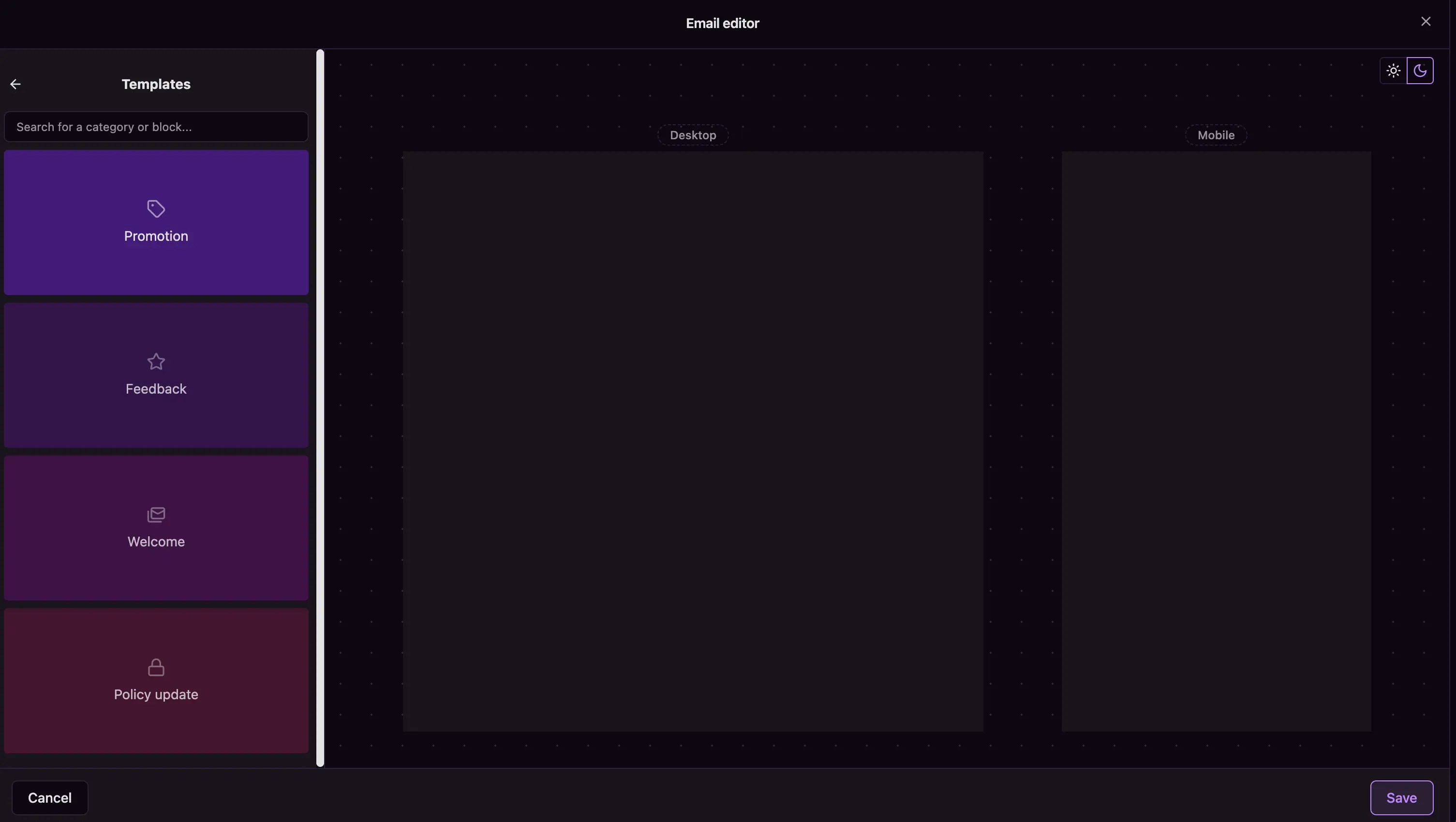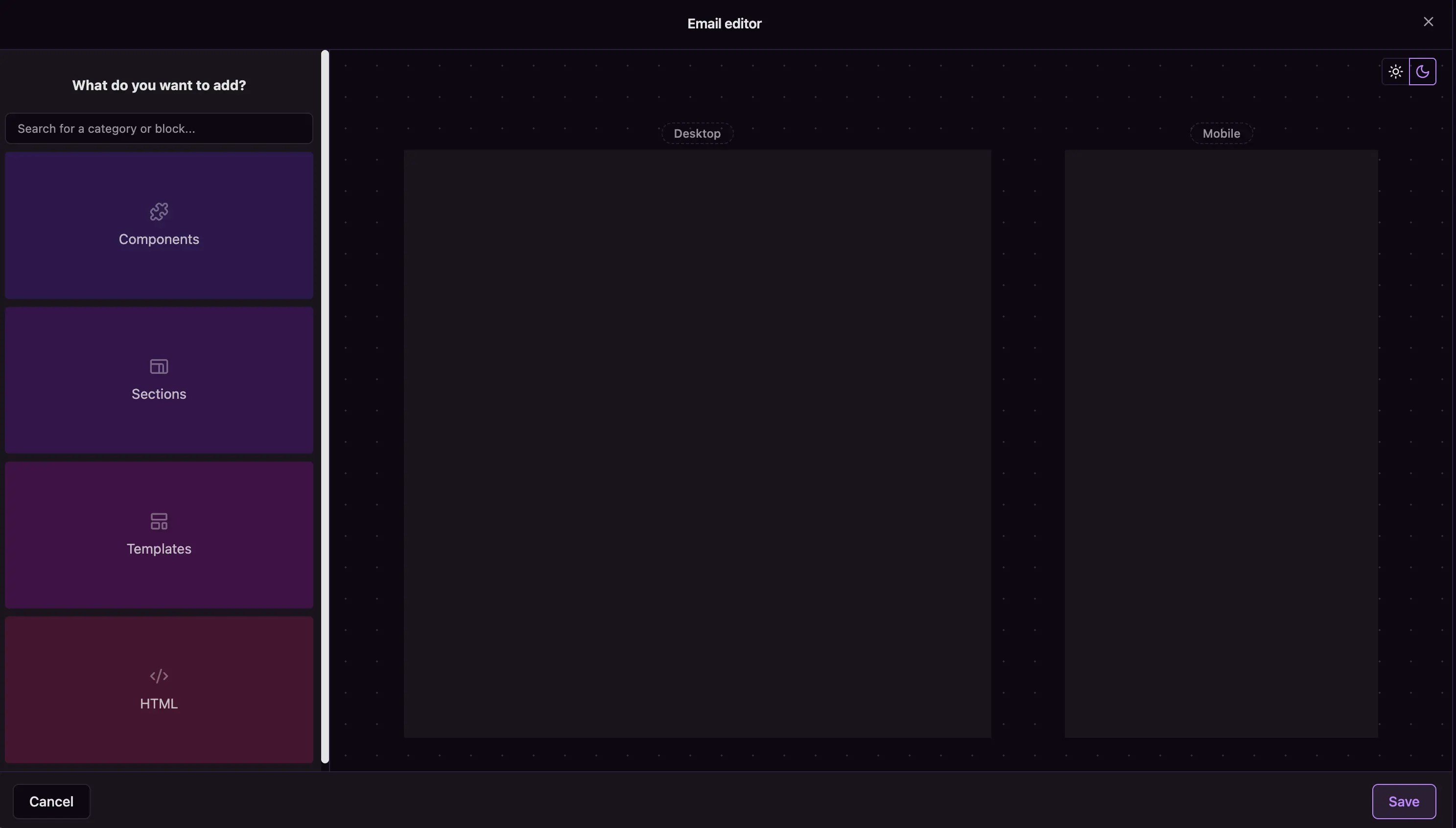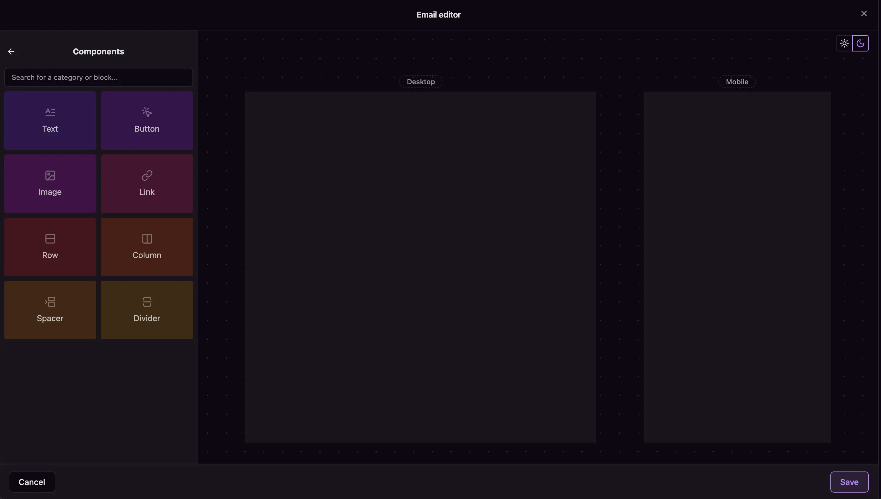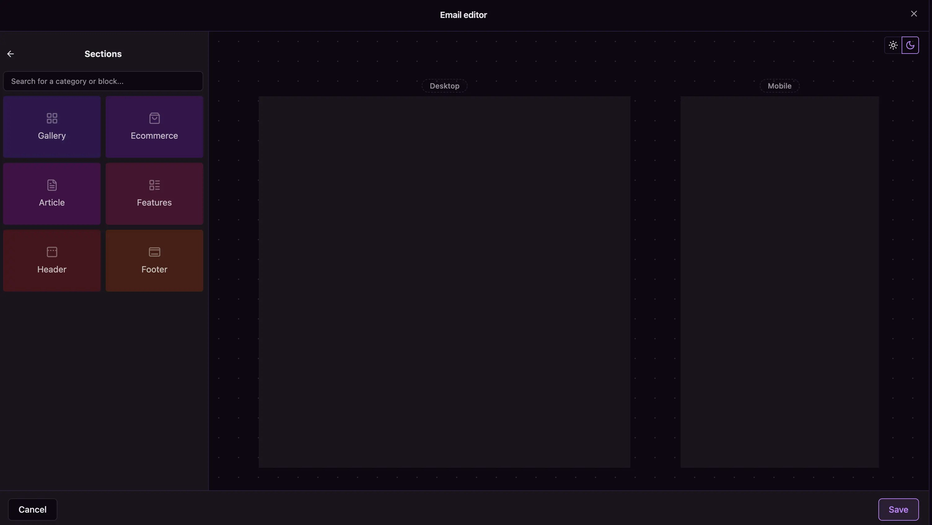 Use the preview toggles to check how your email looks on:- Desktop: Ensure your layout works on wide screens