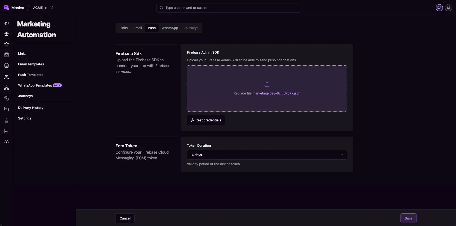 By the end of this guide, you’ll know how to configure Push settings required for sending notifications from Masivo.Step 1: Open push settings